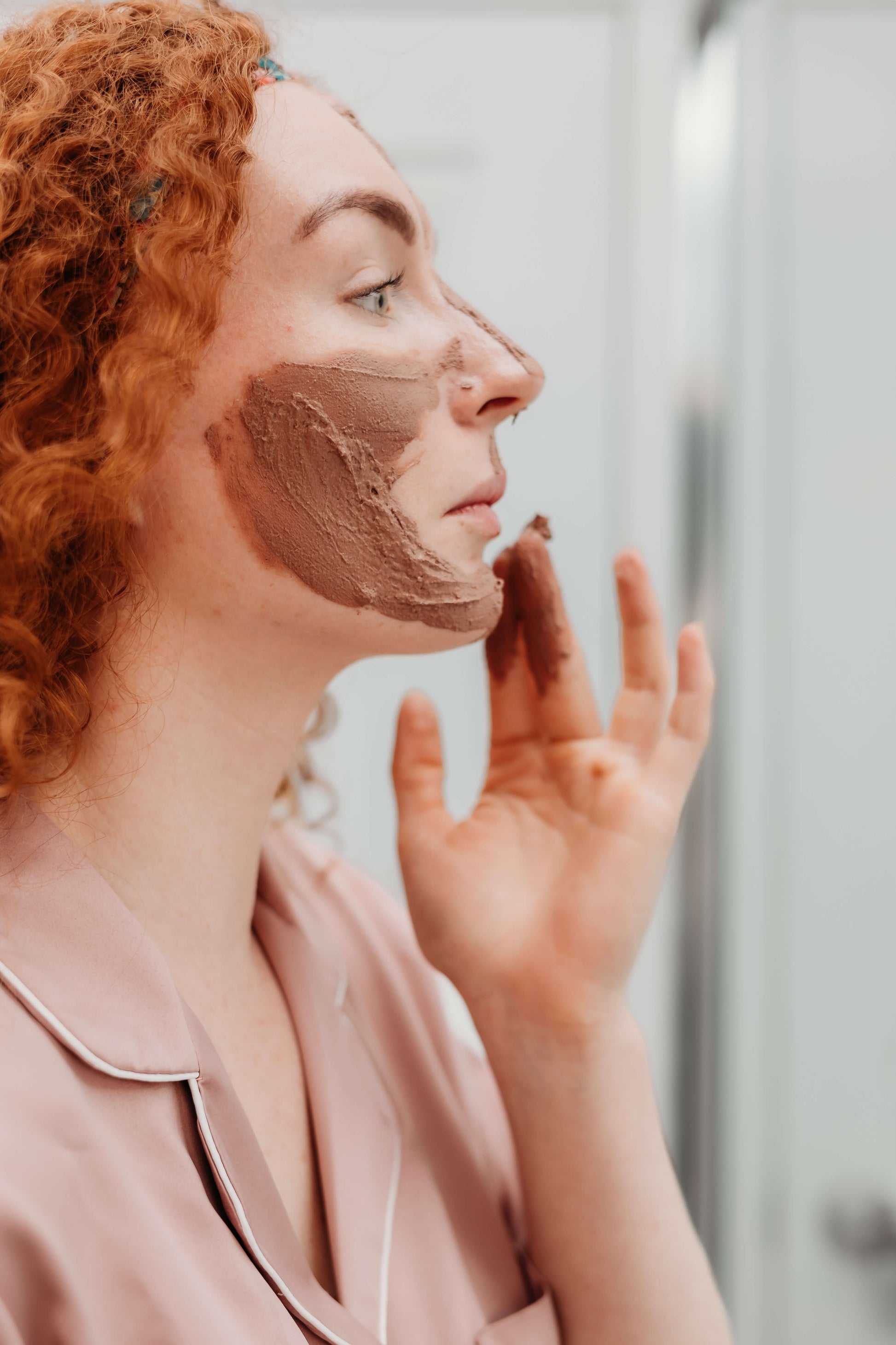 Mask: Apply the Celestial Cacao Ritual Anti-Oxidizing Face Mask after exfoliating. Follow with a cleanse, cold water splash, and moisturize with the Opulent Moisturising Lotion Bar.